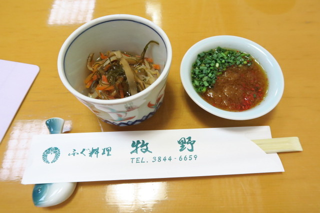お通しには、松前漬け。そして、河豚用のおろしだれが登場。