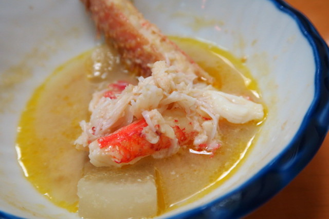 こちらが、名物の「蟹大根鍋」。シンプルに、大根と蟹のみのお鍋なんですよ!これにはびっくり。