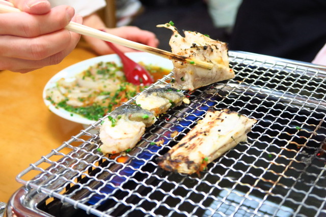 焼き河豚もほとんどハツ体験なので、焼いてもらえるのがうれしい。