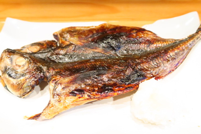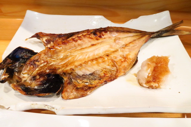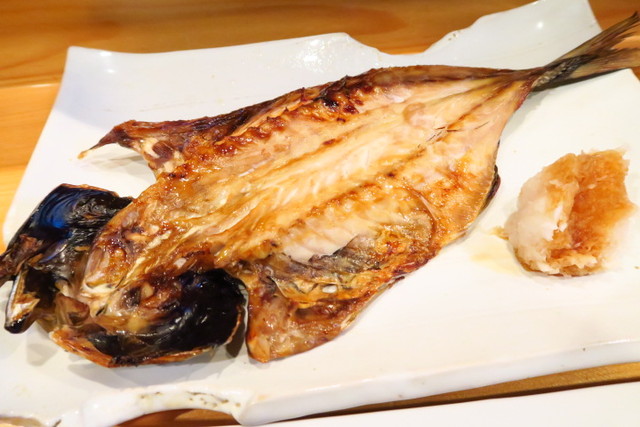 お魚は、でっかいよ!と大将が言っていたので、あじの開きをチョイス。