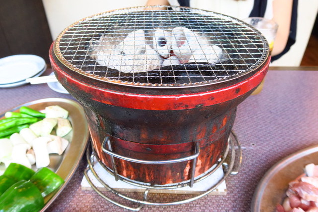 もう七輪の網の上はお肉でいっぱいに…!