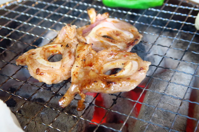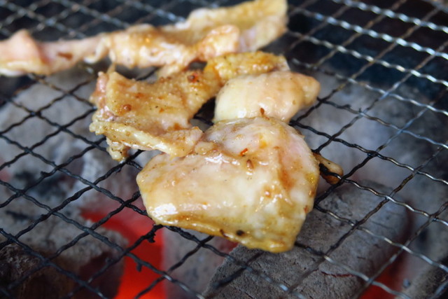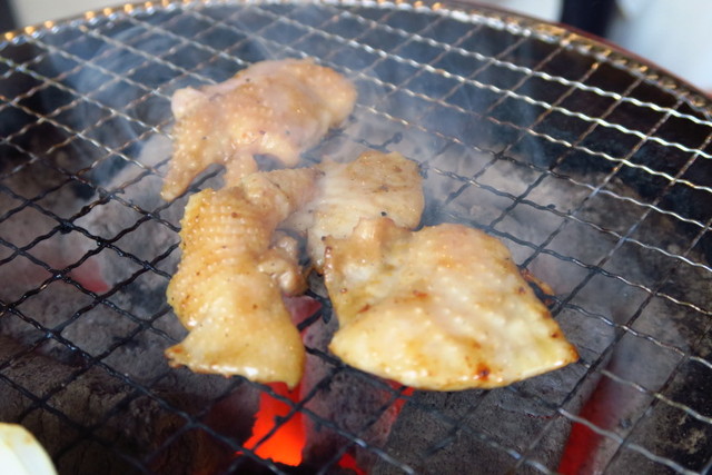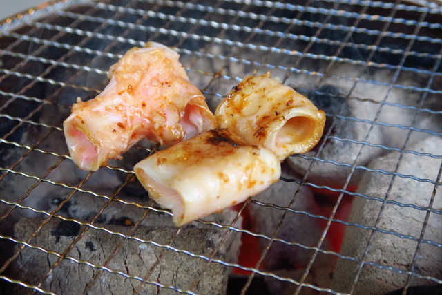 炭火でさっと火を通し、醤油ダレが少し焦げたところで食べるのがおいしいポイント。