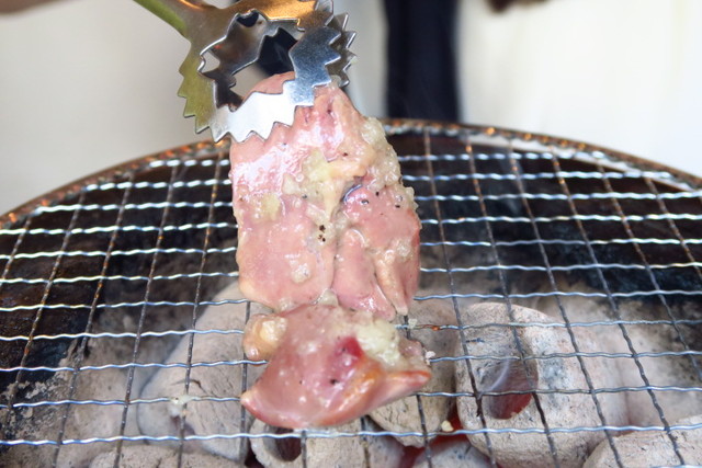 なんと、お店で火を起こしている炭火で焼くというこだわりです。 炭火で焼くことによって燻製効果もあり、短時間で絶妙な焦げ目と焼き加減になってさらにおいしくいただけます。
