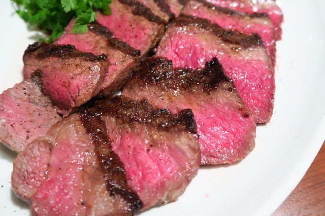 美しく焼き上げられた牛肉のタリアータ。