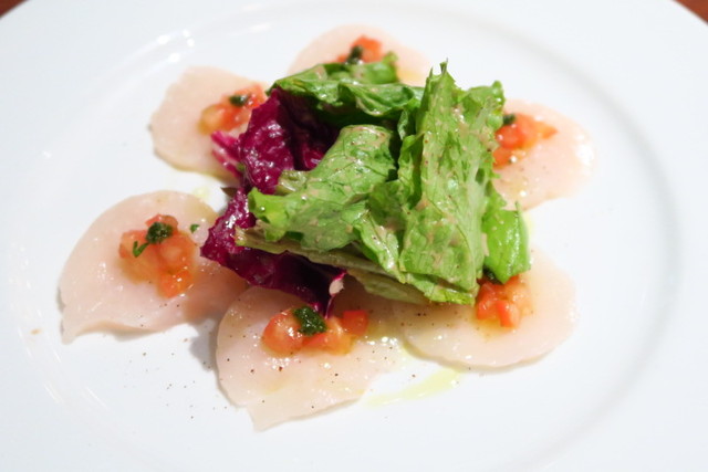 続いて、色合いも鮮やかなホタテのカルパッチョ。