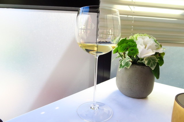 ワインは白です。グラスもあわせて変えて頂けるので香りまで楽しめます。