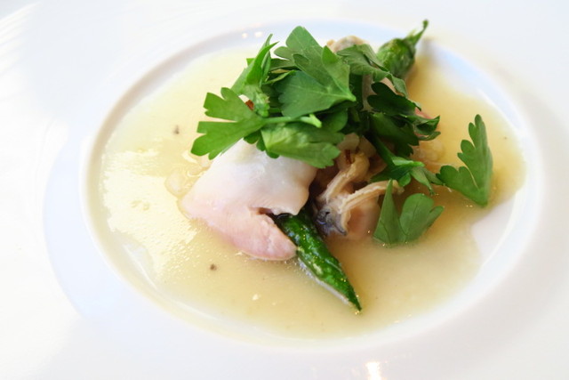 シェフの緒方さんはパリの3つ星レストラン 「アストランス」で修業され、シェフ「パスカル・バルボ」の精妙な加熱とテクスチャの対照、 繊細で完成度の高い料理を目指しているんだとか。