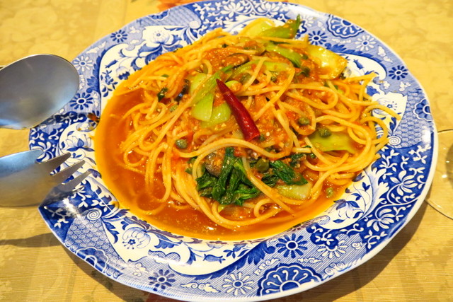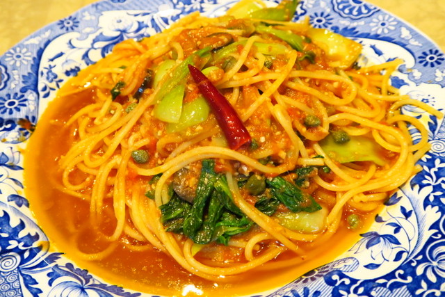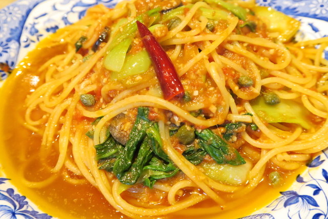 太めのスパゲッティにソースがよく絡みます。