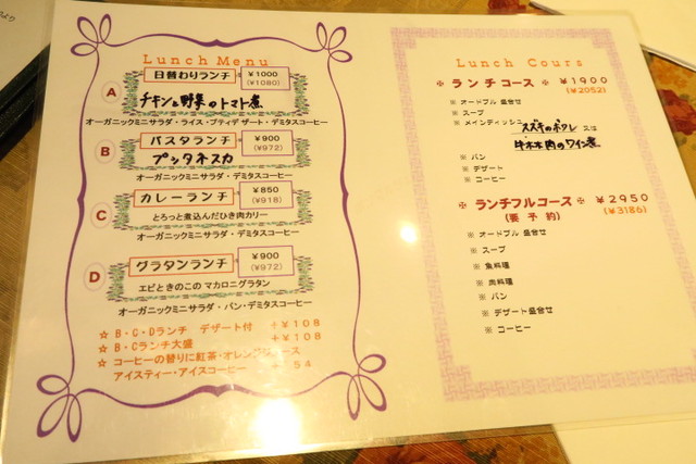 日替わりランチは850円からとリーズナブル。コースと要予約のフルコースもありました。