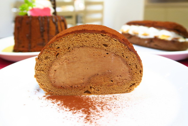 生地は堂島ロールのこだわりのしっとりふわふわ生地にバンホーテンのココアを練りこんでいます。