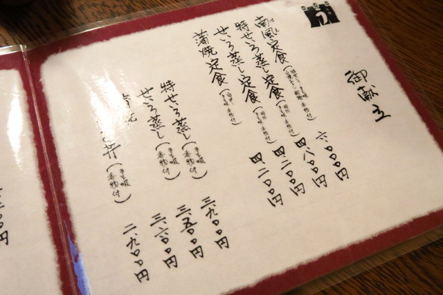 名物のせいろ蒸しを中心に、蒲焼などもありました。