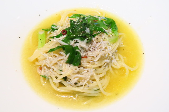 まだまだ食べます。〆は「しらすと九条ネギのぺペロンチーノ」。