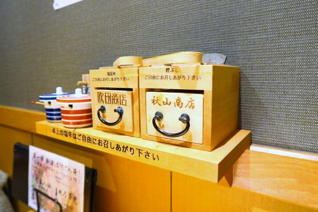 待っている間、テーブルに置いてある塩昆布や鰹節、塩辛などは自由に食べてOK。