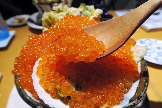 天丼と同じくらい大きな丼に入ったイクラ。こんなにたくさんのイクラを見たのも初めてかもw
