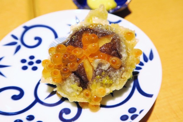 イクラのインパクトが大きすぎますが、天ぷらひとつひとつも手が込んでいて、おいしいです。