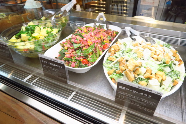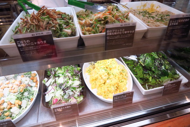 ガラスのショーケースの中には、冷たいデリと温かいデリが並びます。