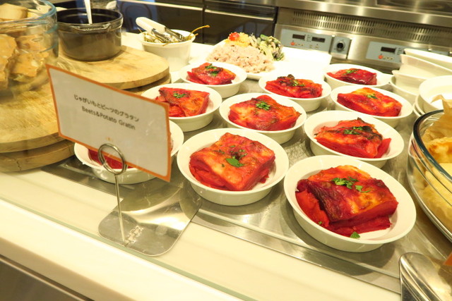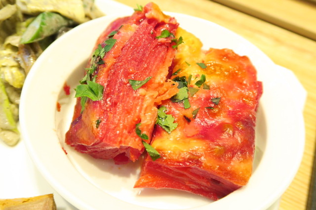 何層にもなったグラタンはビーツの紫色がキレイ!