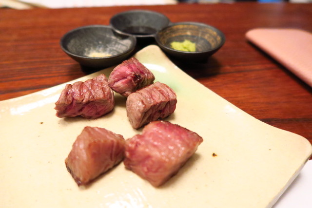 そしてメインのお肉はワサビ、塩、醤油をお好みでチョイスしてください。