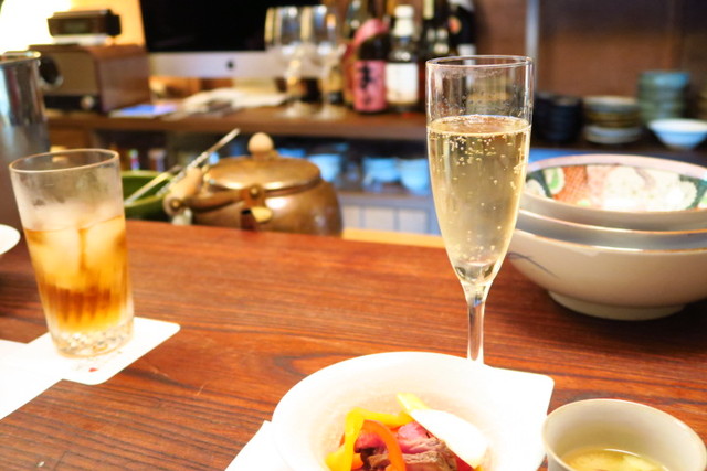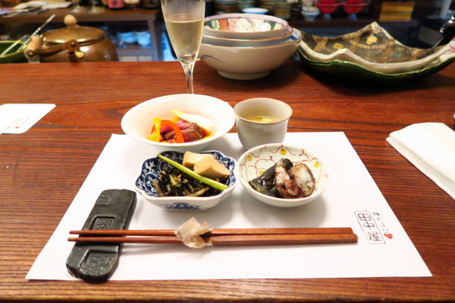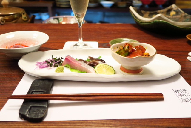 この日は5名で貸切状態。お料理は、田中さんがひとりでやられているのでお任せコースをお願いしました。