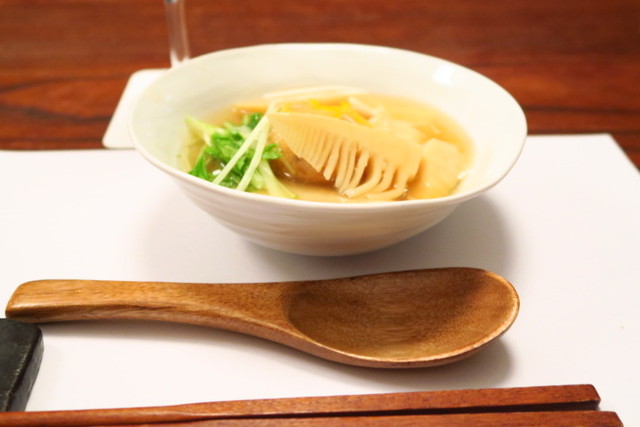 筍の下には蓮根饅頭が隠れています。上にはたっぷりの餡かけで優しい組み合わせ。