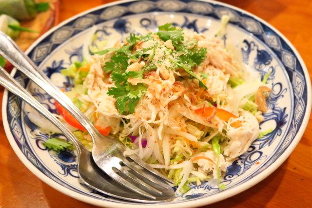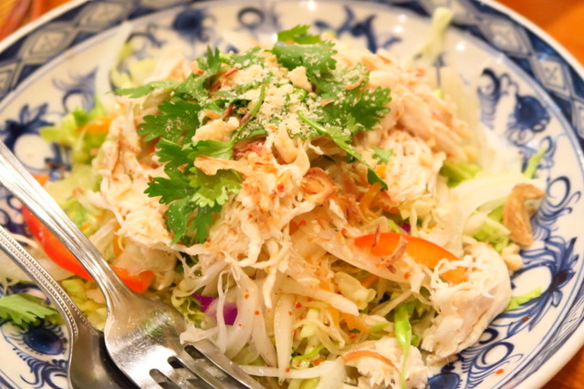 しっかりパクチーも乗った、「とり肉のサラダ」。