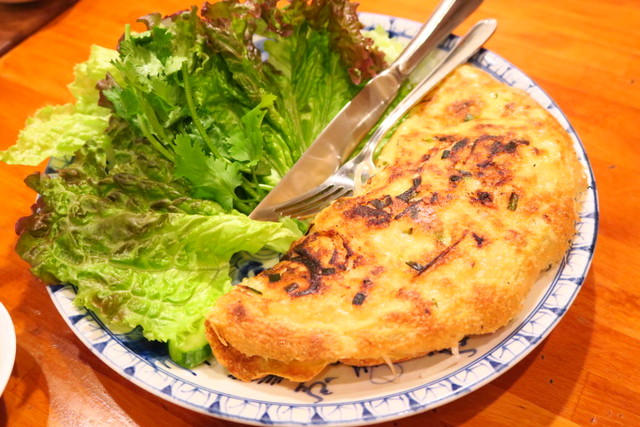 こちらも定番ですね!ベトナム式お好み焼き、いわゆるバインセオです。