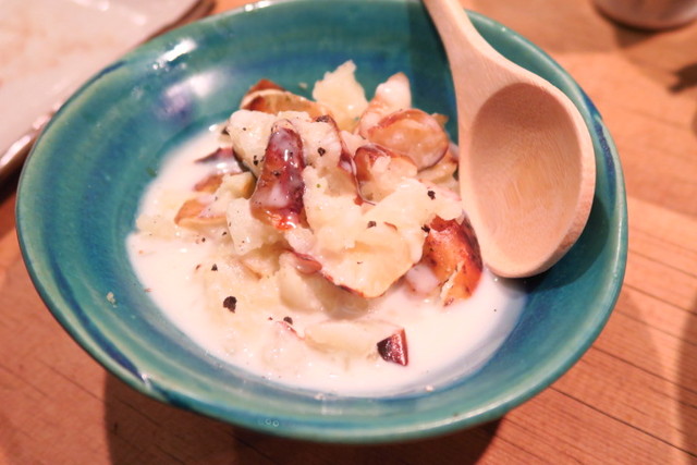 こちらは変わり種のポテトサラダ。ベーコンたっぷりでポテトがクリームの中に浸っているんです。ブルーチーズを使っていて香りも特徴がありました。
