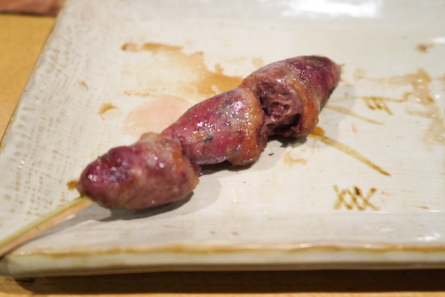 まずは、つくねからスタート。たれは少な目であっさりとしています。お肉の味が感じられて、美味しいです。