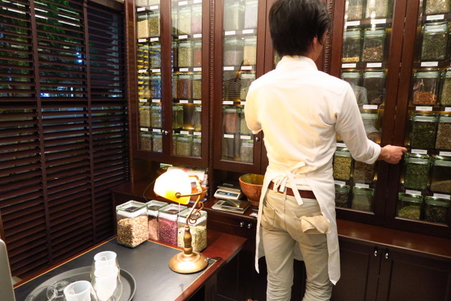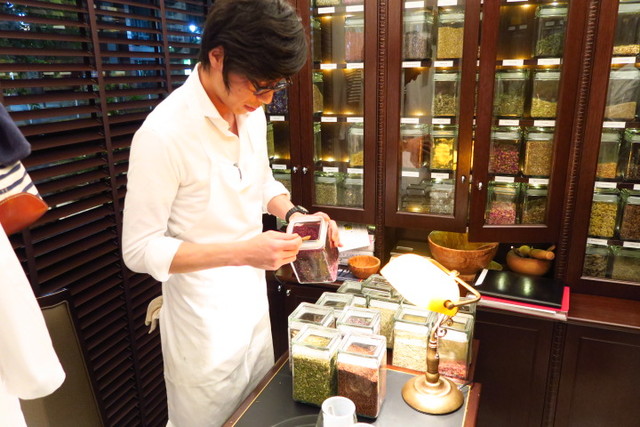 シェフに改善したい悩みを伝えると、それに合った自分だけのハーブティーを調合してもらえるという、素敵なサービス。 ハツは、「不眠」「むくみ」「便秘」の3つをお願いしました!