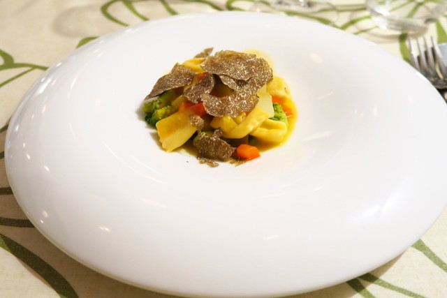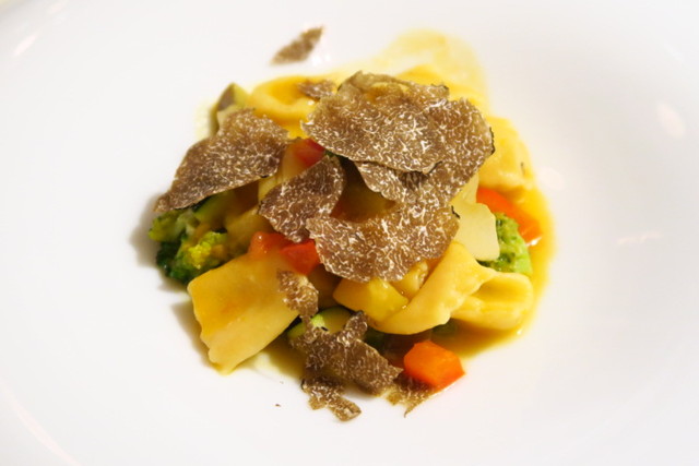 一緒に添えてあるのは、これまたオーガニックの野菜たち。さらにパスタの上にはサマートリュフがたっぷりとかかっていて、香りがとってもGOOD!贅沢なパスタに、幸せ気分へと導かれます。