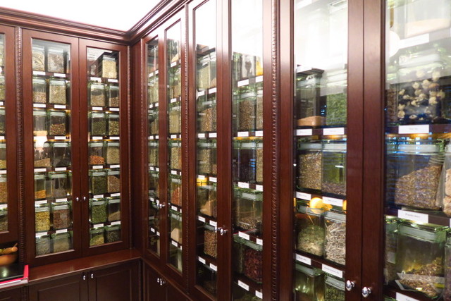 お店に入るとすぐに目に飛び込んでくるのが、ガラス瓶に詰められたハーブの数々。その種類は、なんと200種類以上もあるのだとか……! カラダやお肌の悩みをこのサロンスペースで相談しながら、自分だけのハーブティーを調合してもらうこともできるんです。