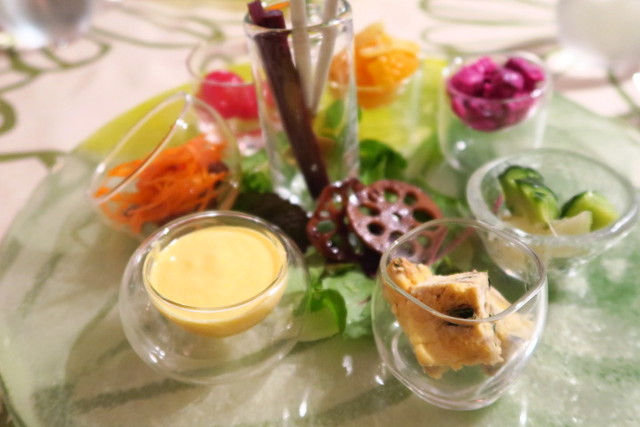 まず最初に登場したのは、色鮮やかな前菜のプレート!