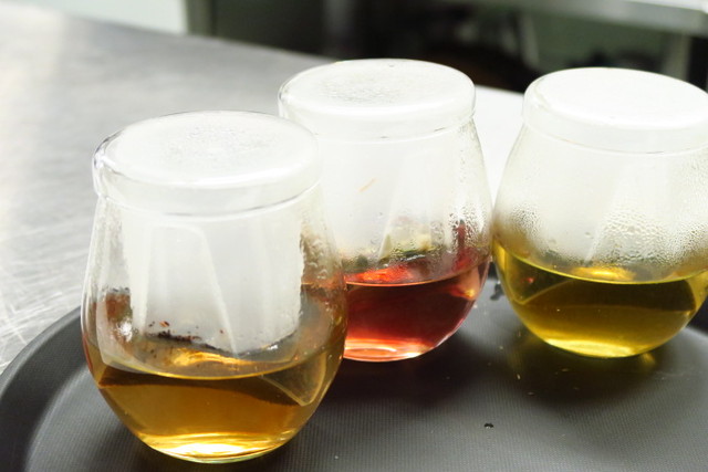 調合したハーブは、その場でお湯を注いで、ハーブティーが完成します。