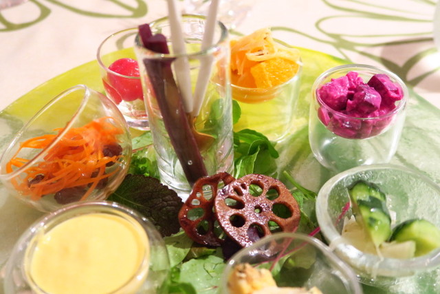 「落合ハーブ園のオーガニックお野菜」使ったプレートなのですが、どれも手が込んでいておいしそう…!