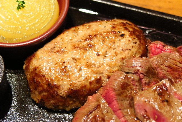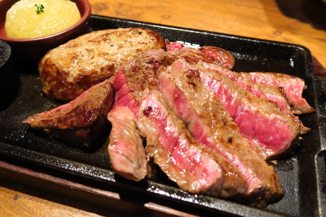 ハンバーグとステーキ、両方食べたかったので、両方一緒に楽しめる「コンボステーキ」をオーダーしました!それが、こちらのプレート!