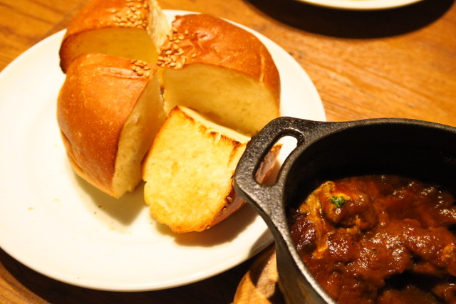 シチューに合わせてパンが欲しくなってしまい、ついついオーダー。すると、バケットがないのでハンバーガーのバンズになりますけどいいですか?とw