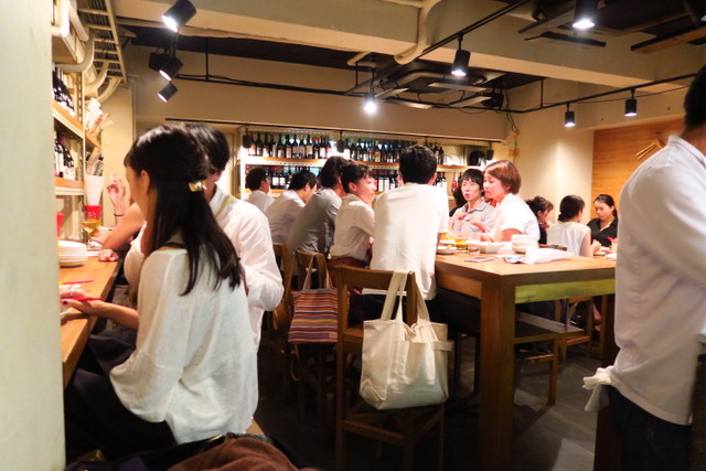活気ある店内はカウンターにスタンディング、テーブル席まで35席程。