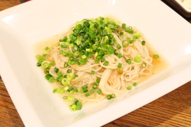 そーめんチャンプルー。具はネギのみのシンプルなチャンプルー。