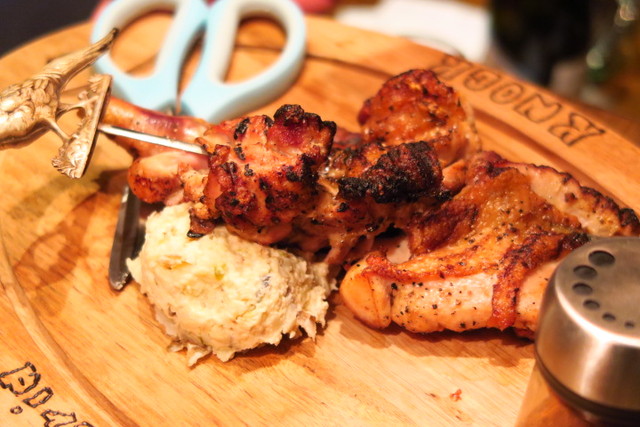鶏もも肉をハサミでカットしながら食べる、その名も「チョキチョキ焼き」。