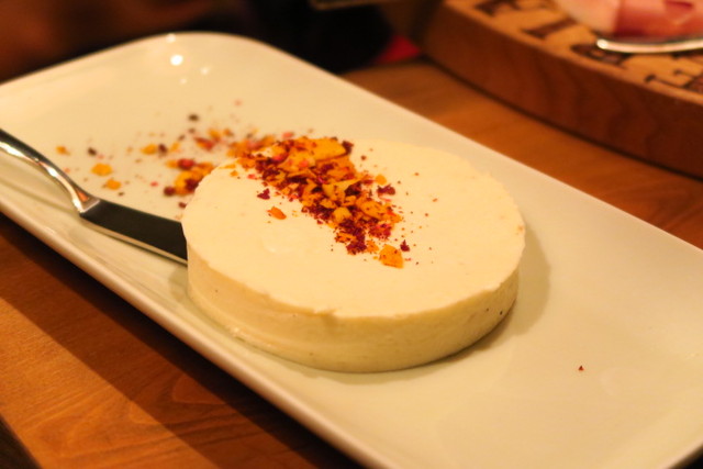 トーストしたレーズンパンにゴルゴンゾーラとマスカルポーネ2種のチーズをミックスしたクリームを乗せて頂きます。