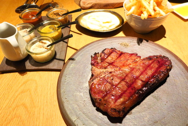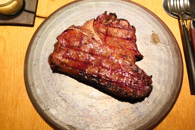 頂いたのは、「テンダープラス ウェットエイジングポーターハウスステーキ」。なんと400gのTボーンステーキ!