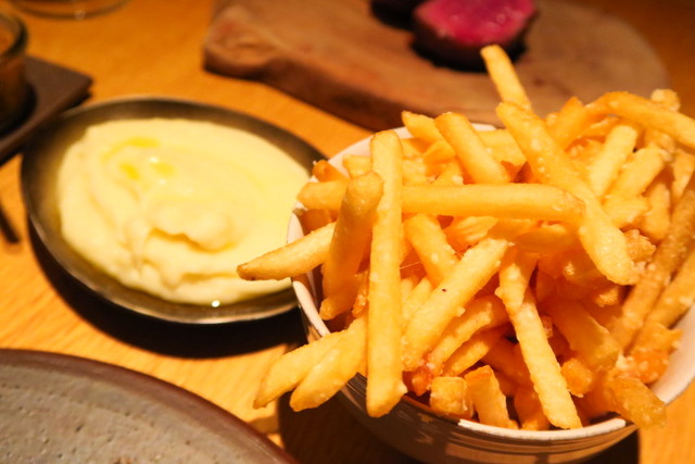 サイドで追加したのは、マッシュポテトとトリュフ塩で食べるフレンチフライ。