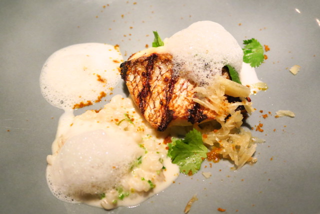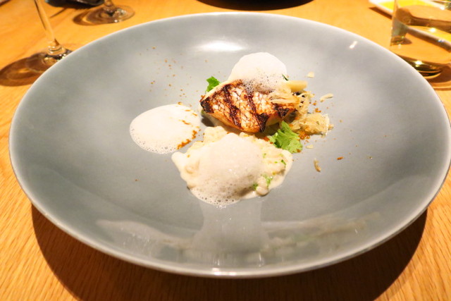 この日のお魚はなんだったかしら・・・。フレンチのように泡を美しく使った一皿です。リゾットも添えてあって、ボリュームもあるんです。