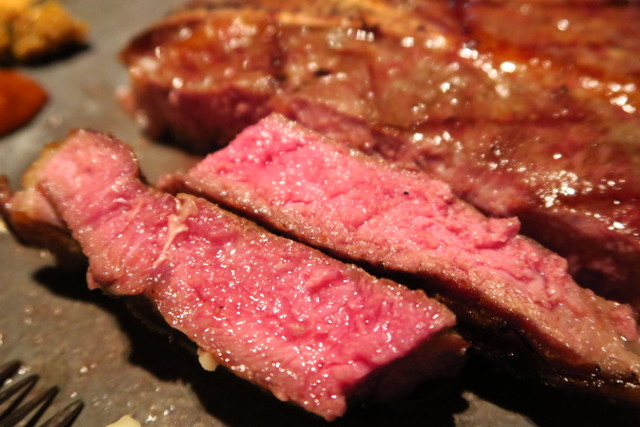 備長炭を使って豪快にグリルされたステーキは表面はしっかりと、中はとってもジューシーに仕上がっています。
