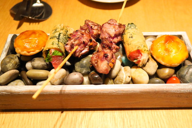 まずは、クミンのスパイスが効いたラムショルダーなどオーストラリアらしい3品を頂きました。手でぱくっといただけるかわいいサイズ。