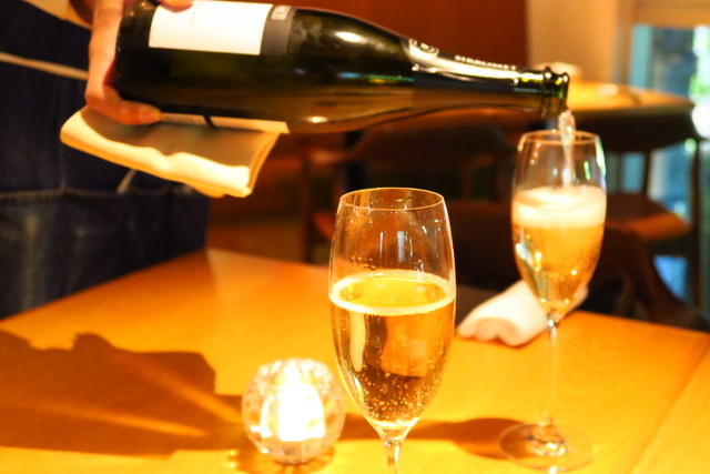 さて、駅から歩いてきたのでのどもカラカラ!スパークリングで乾杯です。