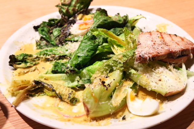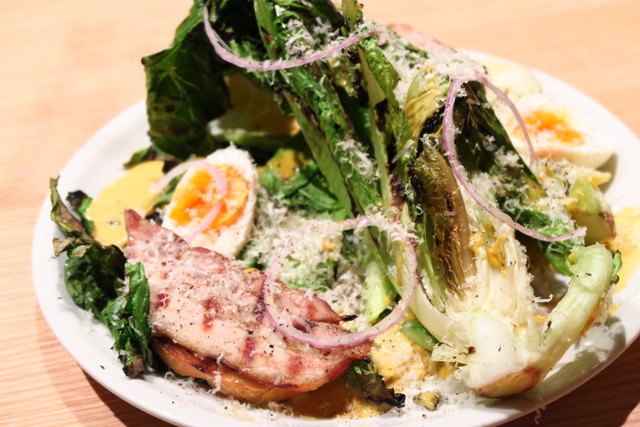 じっくりとグリルされたレタスは甘みが増して、旨みもアップ。一緒に添えてある厚切りのベーコンとゆで卵の存在感も忘れずに。
