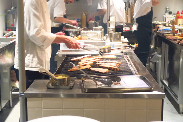 お肉をオーダーしたら、焼ける様子を眺めながらワインを飲む。