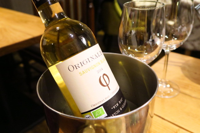 お酒はオーガニックの白ワイン「オリジナル バルトン&ゲスティエ ソーヴィニヨン・ブラン オーガニック」。