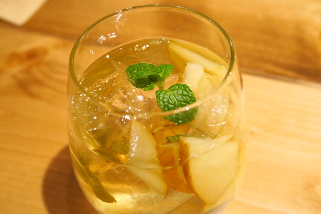 ということで、さっそく乾杯です。まずはお店のおススメの「自家製サングリア」から。